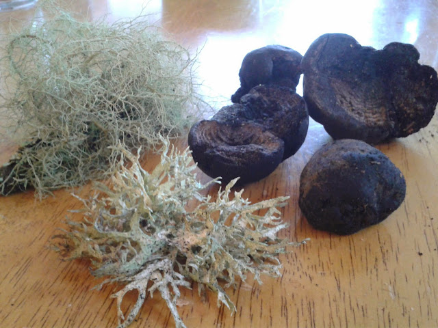 Also in the photo are Cramp Balls (Daldinia concentrica) or as I know them most King Alfred’s Cakes so named because of the apocryphal story of King Alfred burning the cakes he baked. The scientific name may have something to do with the pattern of the rings that form inside the fungi. These cakes are useful when dried for tinder as they burn slowly with a bluey glow if I remember correctly.